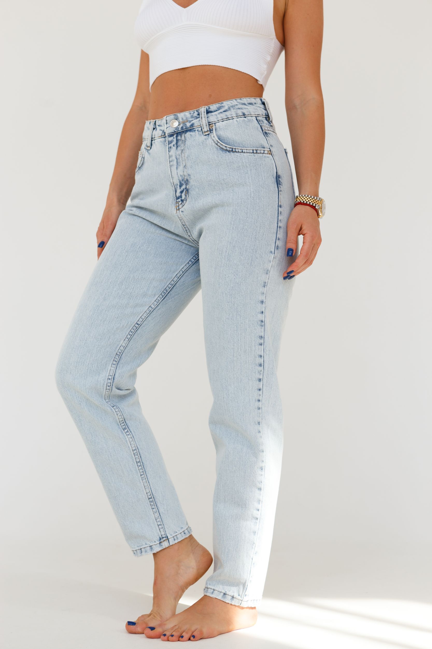 Джинсы MOM SLIM зауженнее в светло голубом оттенке