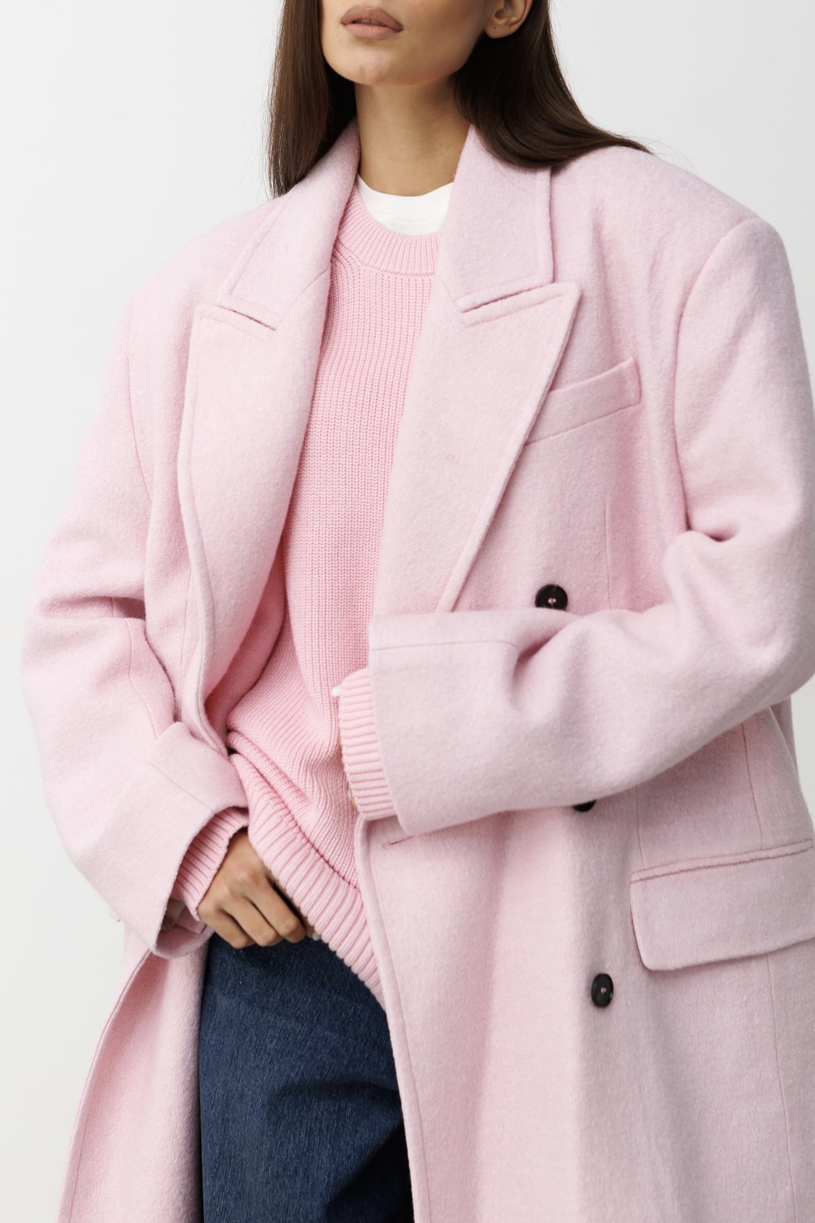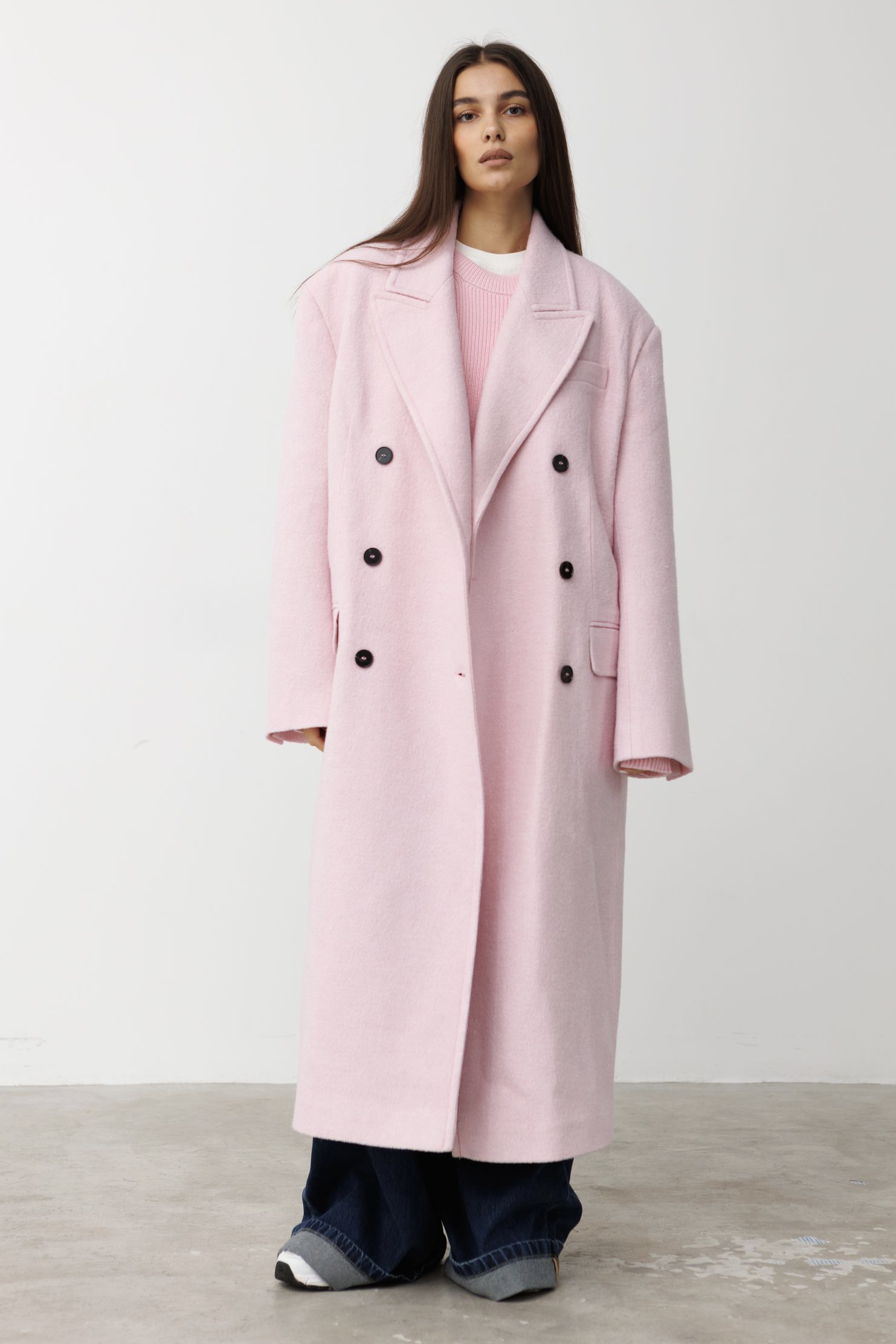 Пальто MAXI SAKURA PINK двубортное из шерсти