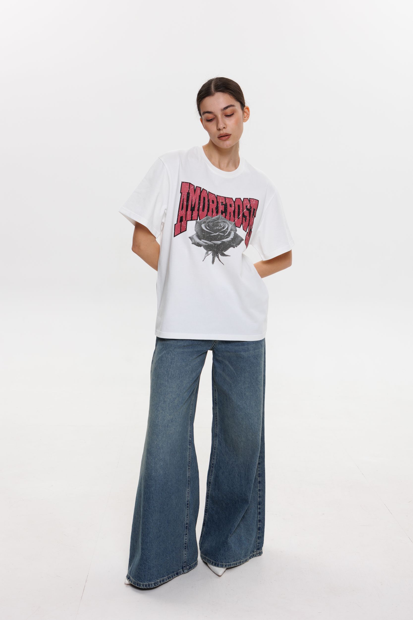 Футболка AMOREROSES принт роза ч/б