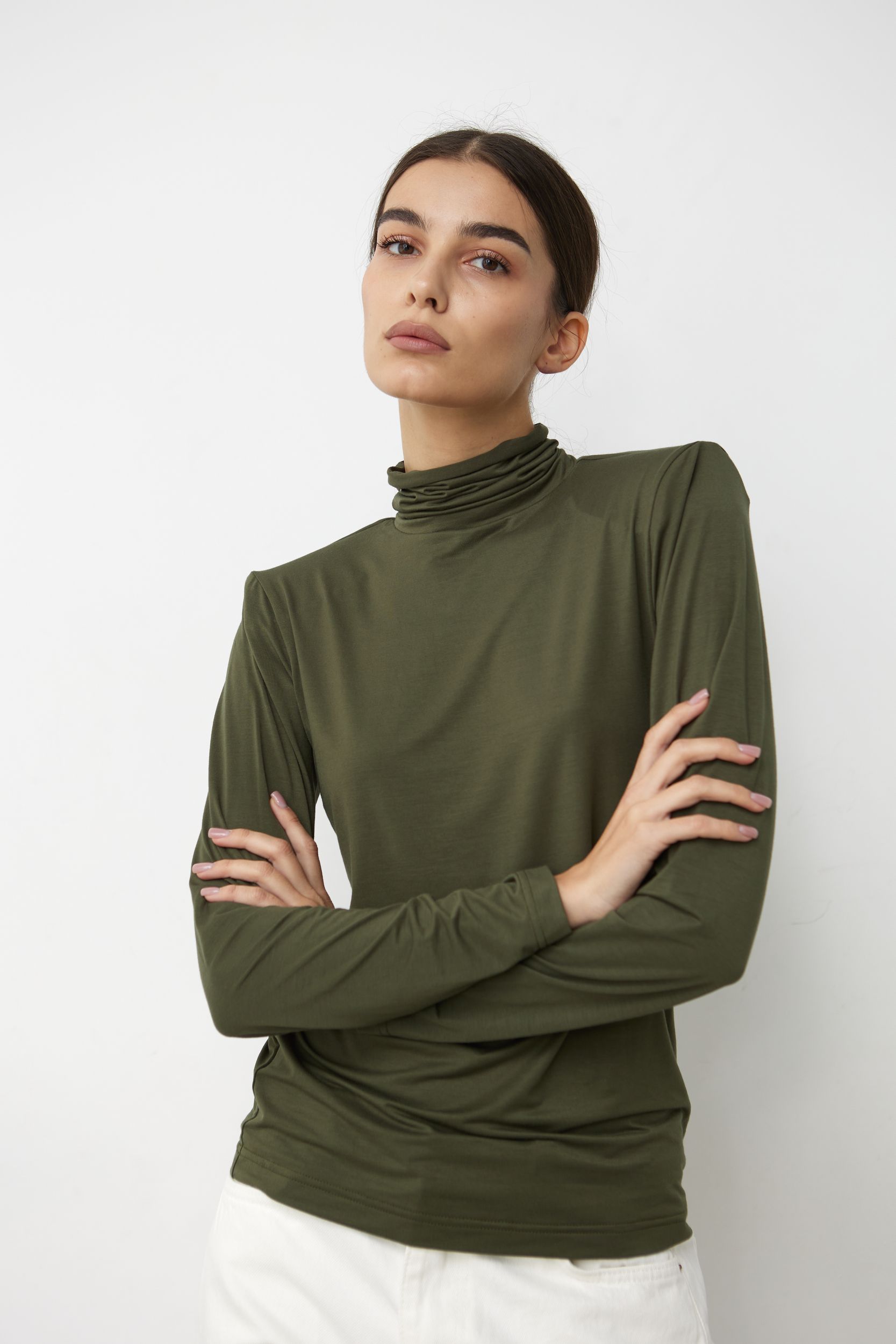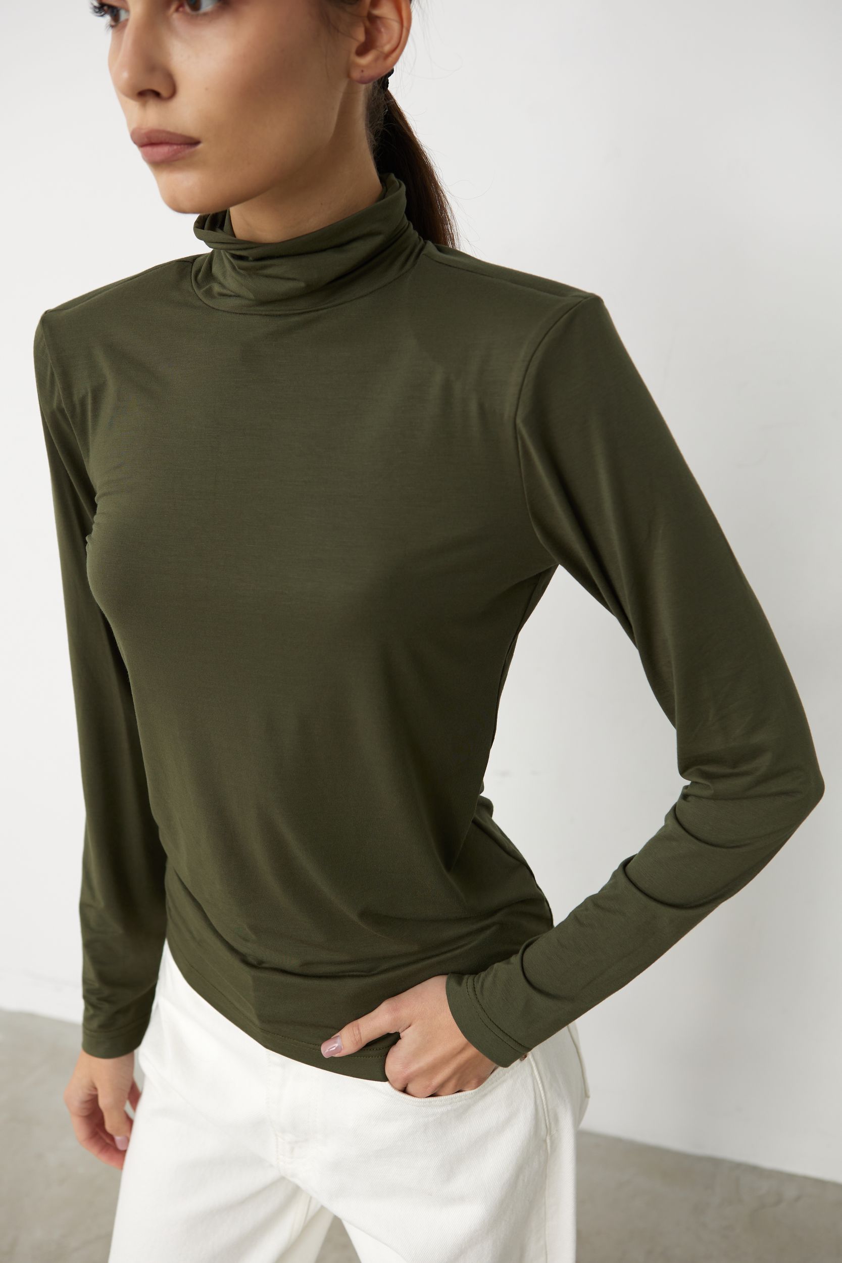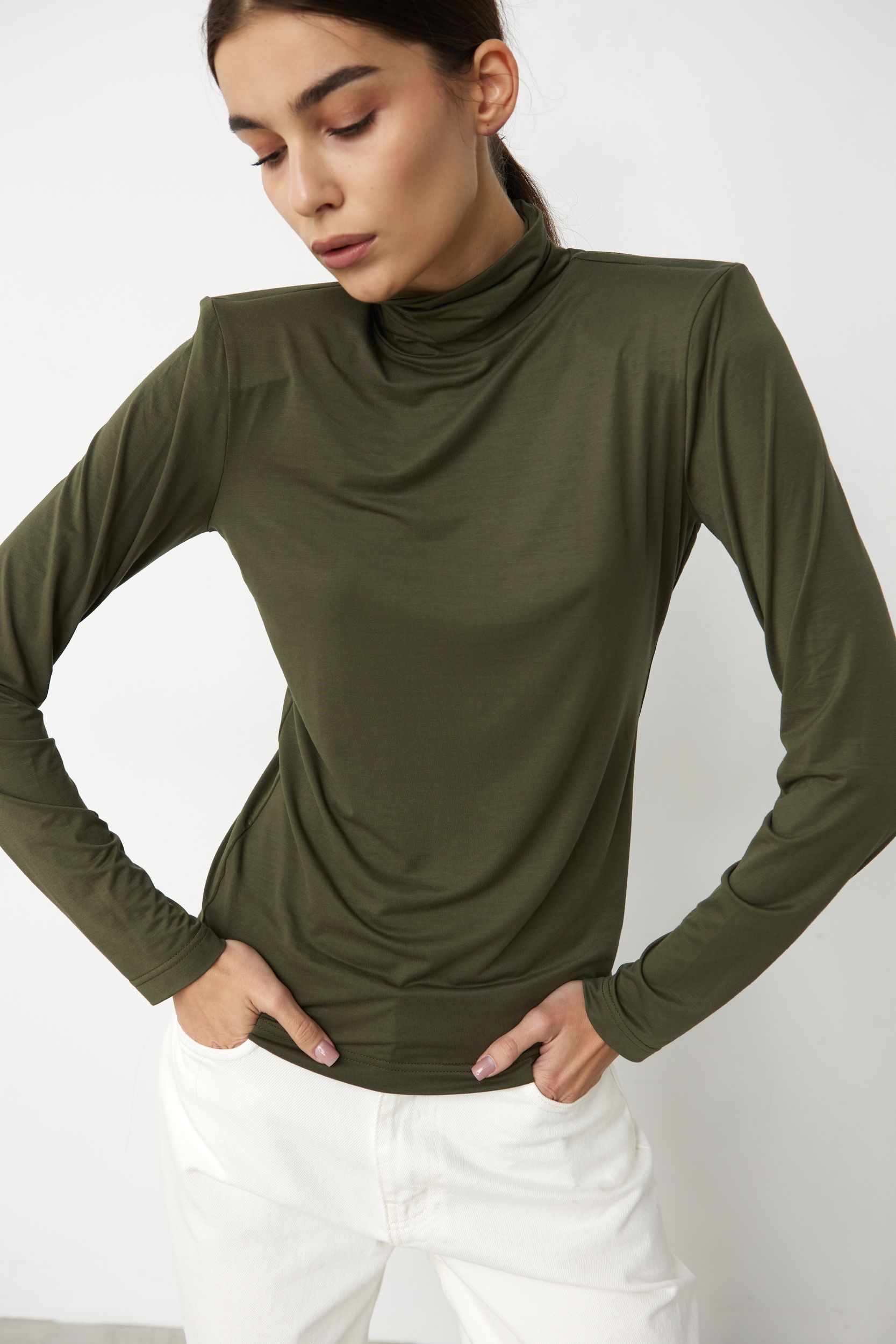 Водолазка с пуговками на рукавах из вискозы