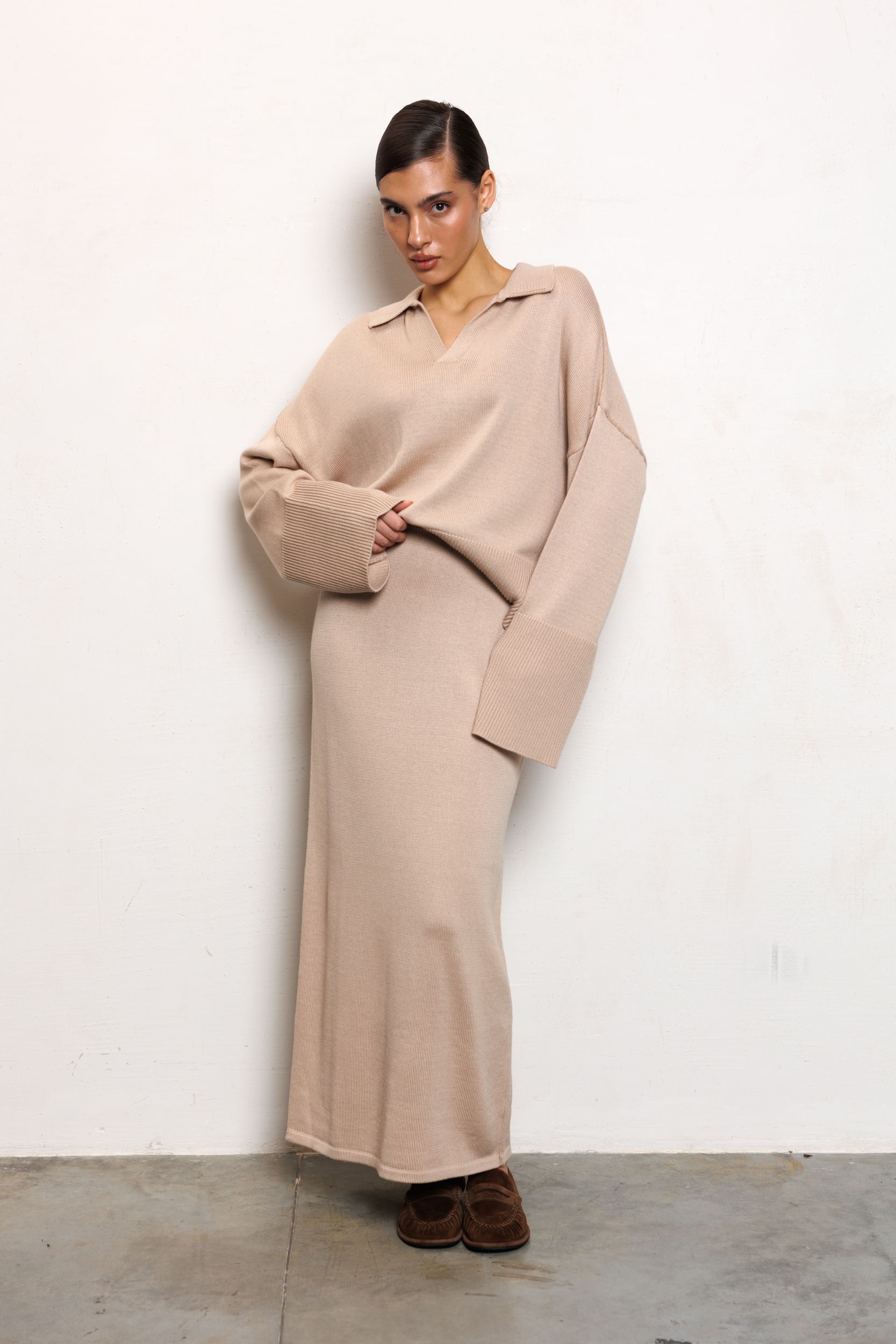 Юбка 91125 миди хлопок темный беж